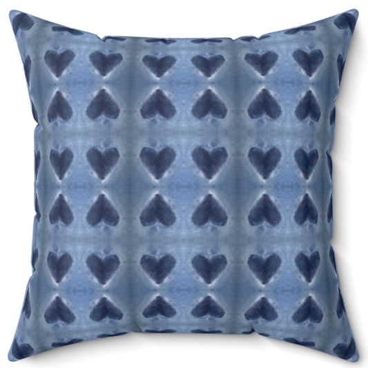 Velvet Square Pillow - Indigo Blue Hearts (LL/P1)