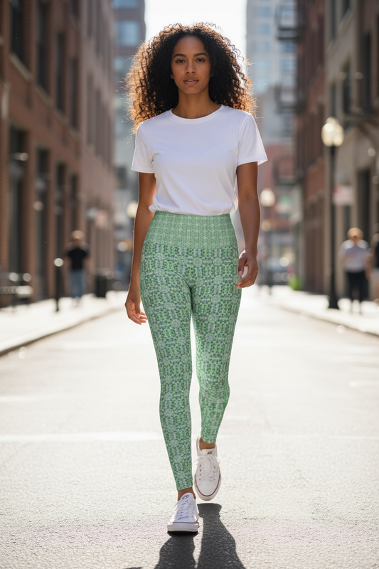 High Waisted Yoga Leggings - Key of Largo pattern (WB/P3)