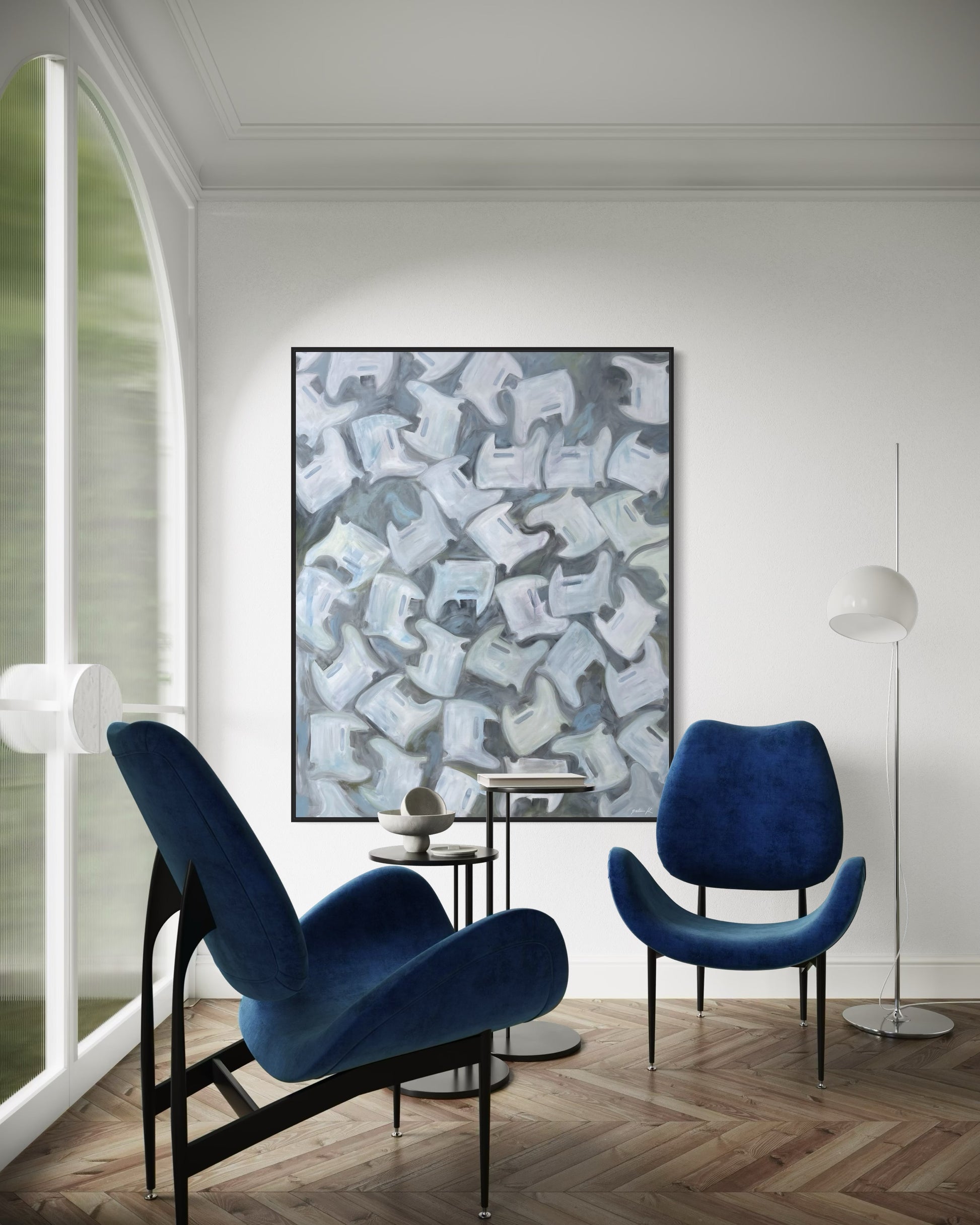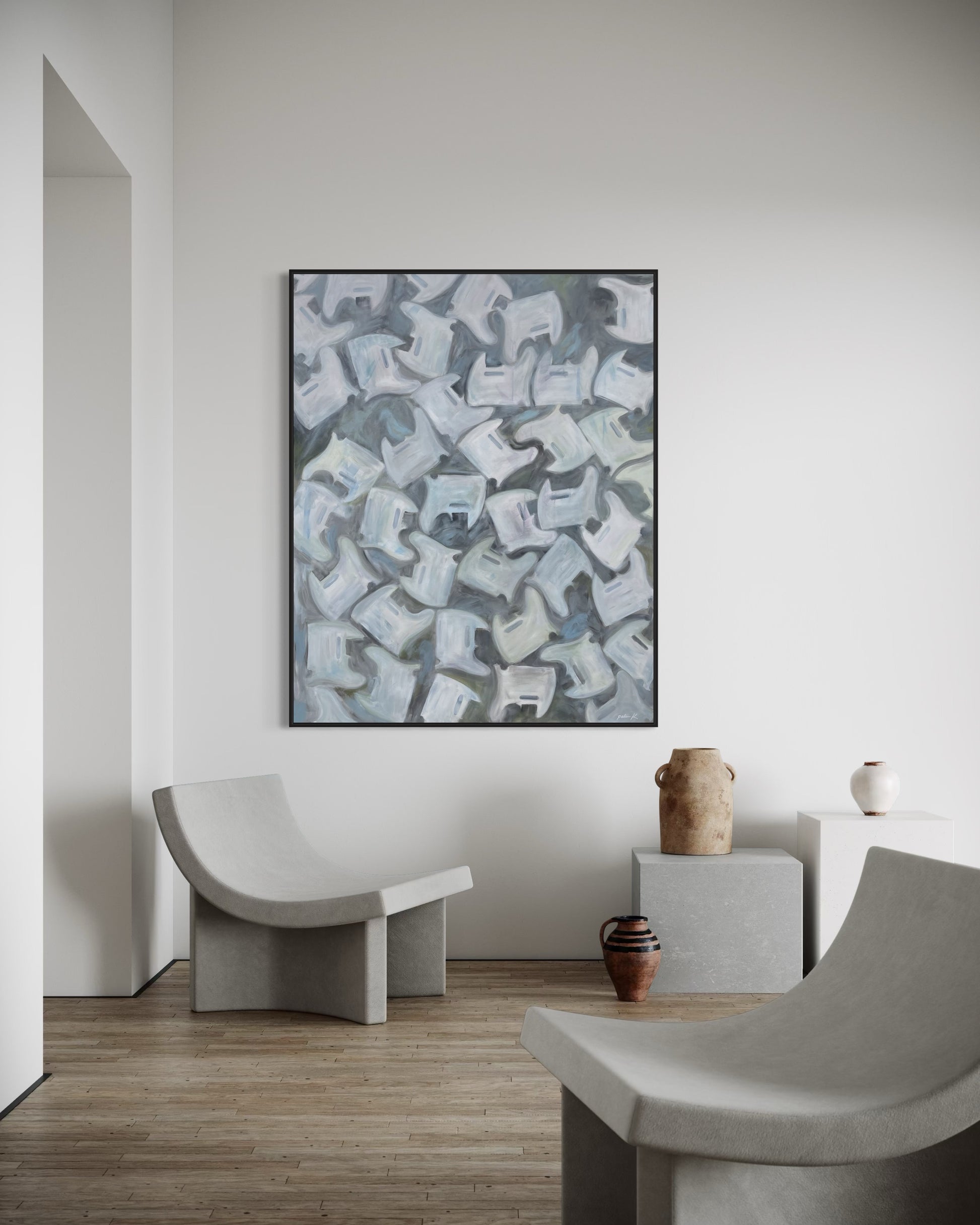 An abstract painting of telecaster pick guards as inspired by Prince and his Hohner "Mad Cat" Telecaster Guitar.