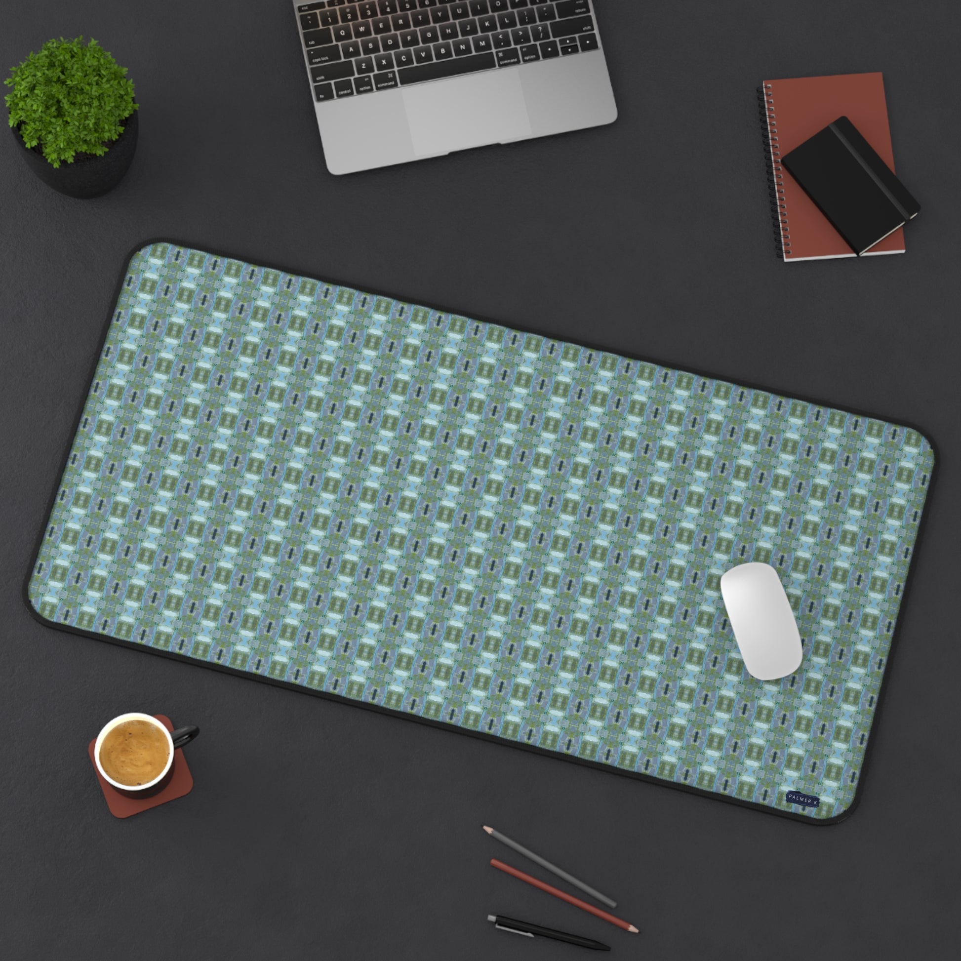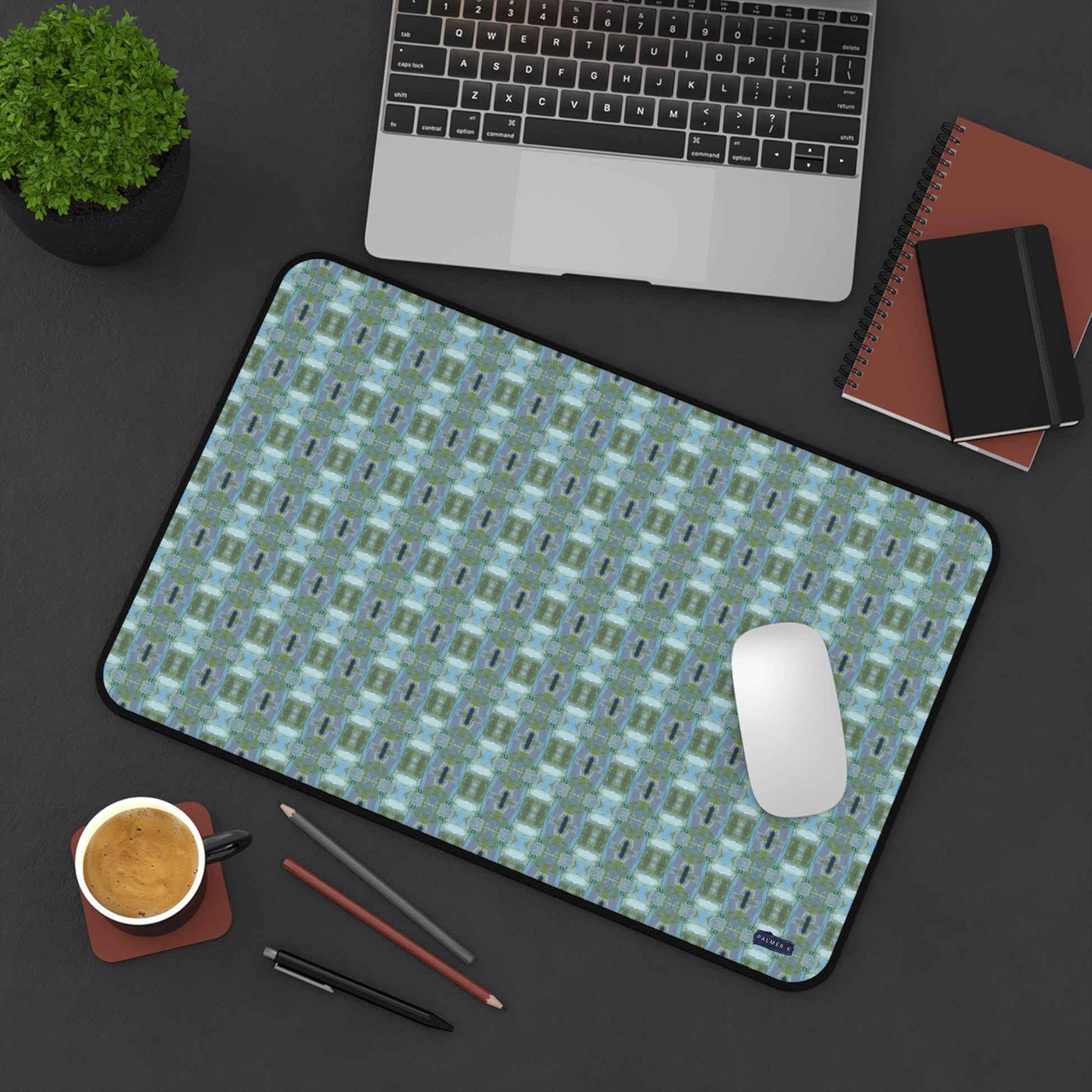 Upgrade your workspace with our stylish, functional neaoprene desk pads - designed to beautify your space and protect your desk in style. Each PALMER K Designs desk mat features a unique pattern created from the original fine art by Karen Palmer. The smooth surface provides easy mouse use and writing, and a non-slip rubber backing will keep it in place.