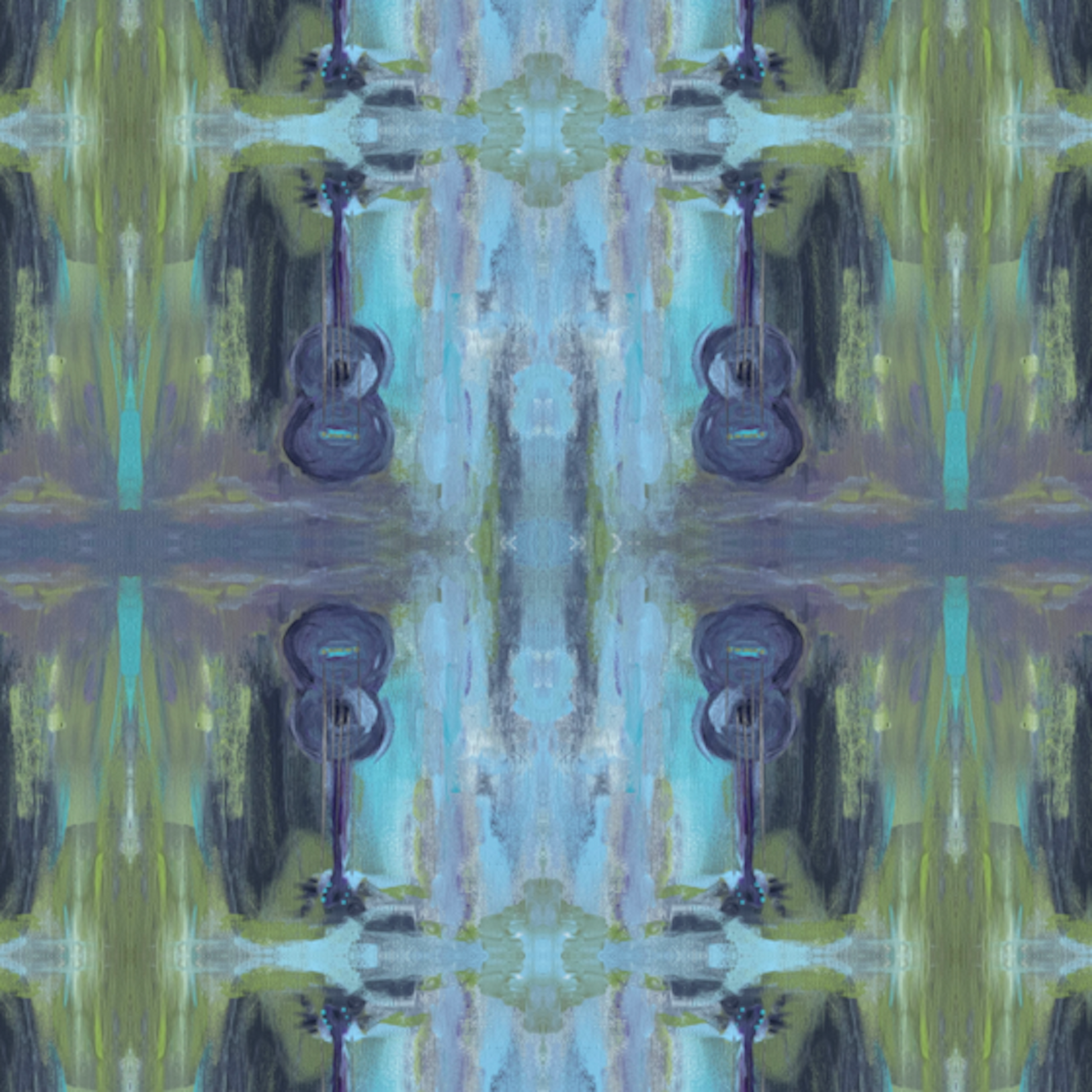 A pattern repeat created from an original abstract impressionistic painting of an acoustic guitar.