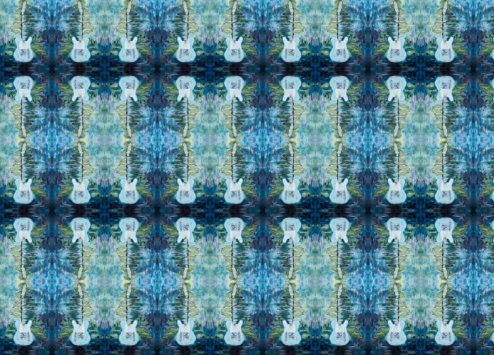 A pattern repeat created from the original fine art painting of a Blue Telecaster guitar.
