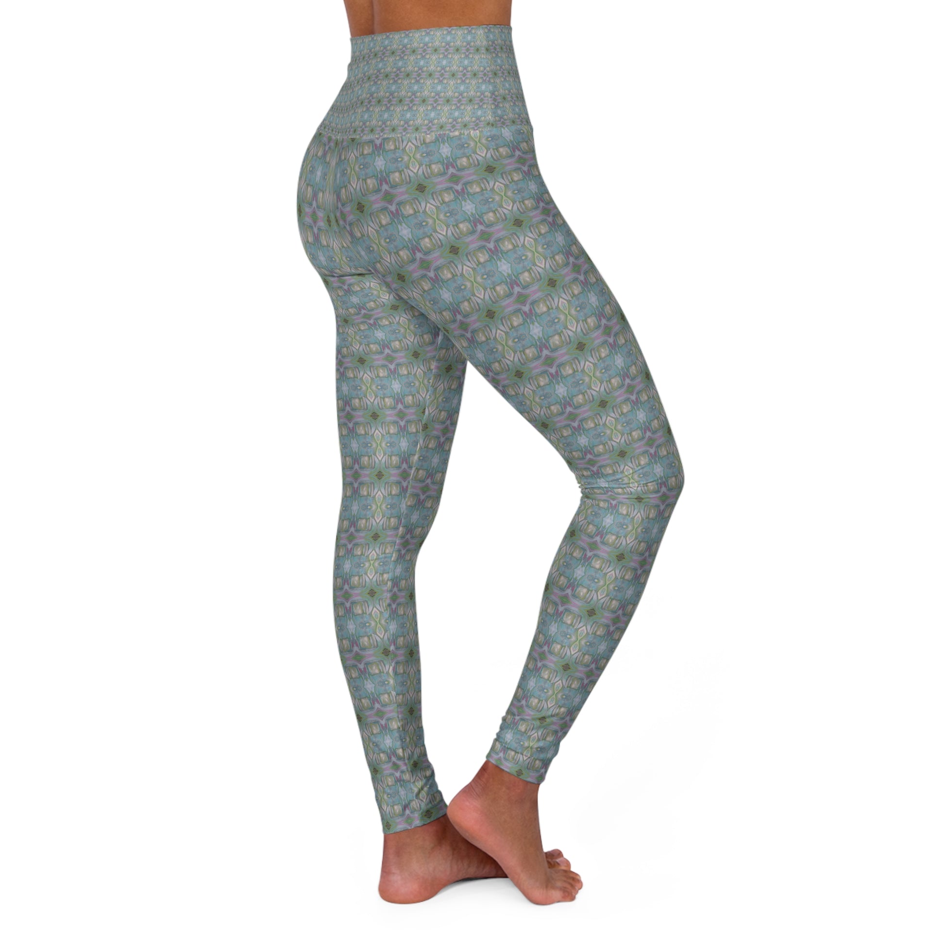 High Waisted Yoga Leggings - Key of Largo pattern (WB/P3)