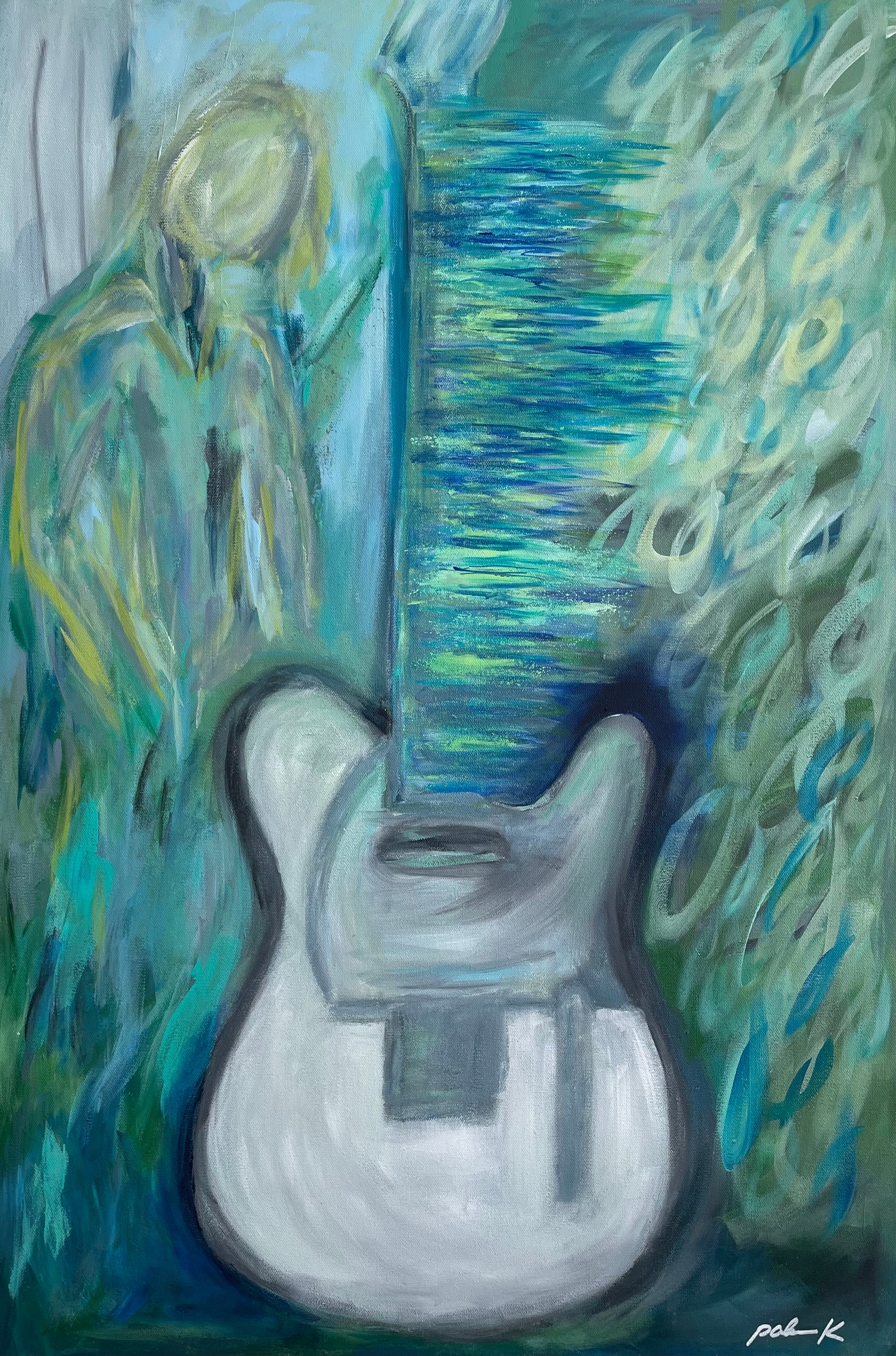 An original abstract impressionistic fine art painting of a Telecaster Guitar by Karen Palmer.